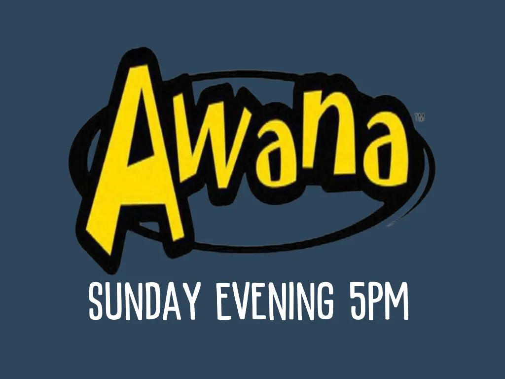 AWANA meets every Sunday evening at 5:00 PM starting September 7. Each club night lasts about 90 minutes.